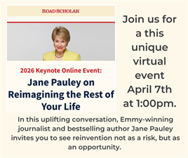 In this uplifting conversation, Emmy-winning journalist and bestselling author Jane Pauley invites you to see reinvention not as a risk, but as an opportunity. True to Road Scholar’s spirit, Jane explores curiosity as a lifelong practice, sharing stories from decades of conversations with remarkable people and the "learning adventures" that changed how she sees the world.