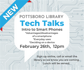 Join us for informative conversation and a light lunch throughout the year while we share tips on the latest technology. This class will feature a discussion on smart phone basics. Sign up online, call or email the library so we know you are coming.